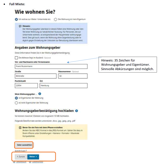 Die nachfolgenden Screenshots beschreiben die Einbindung des Vermieters bei der elektronischen Wohnsitzanmeldung: