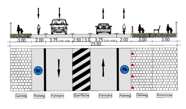 Abb. 2: Geplanter Querschnitt Badstraßenbrücke
