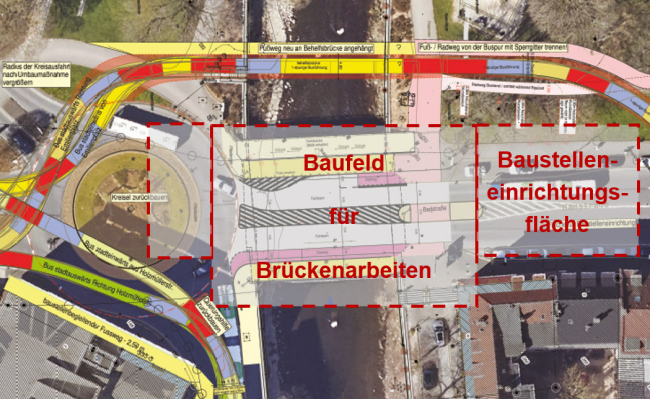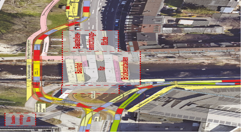 - Verkehrsführung während der Bauphase im direkten Umfeld – Behelfsbrücke