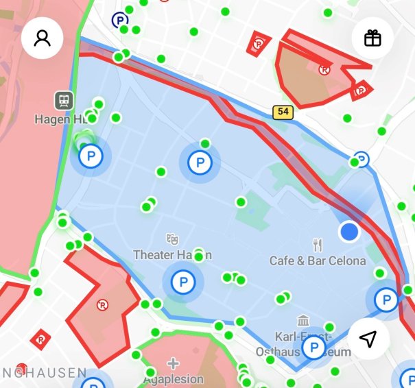 Abbildung 1: Obligatorische Parkzone in der Hagener Innenstadt (Darstellung aus Lime App)