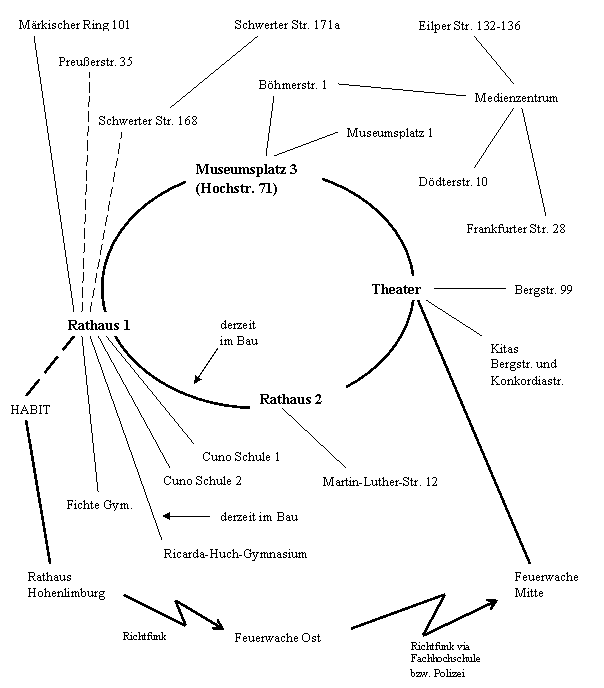 Übersicht über die Vernetzung der städtischen Dienstgebäude