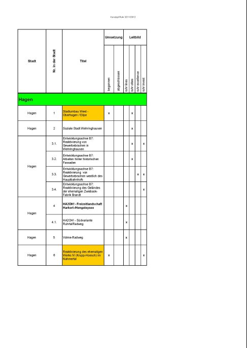 Anlage 1:Hagener Projektliste im Konzept Ruhr