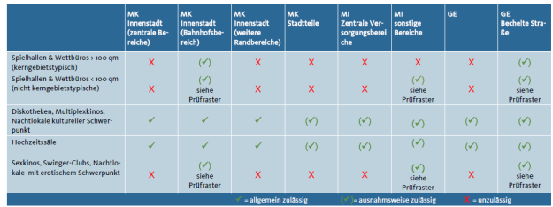 · Identifizierung und Festlegung von Gebieten, die sich für die Ansiedlung von Vergnügungsstätten eignen und entsprechende Tabuflächen