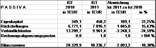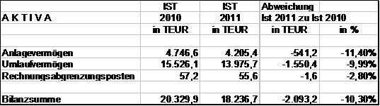 Die Bilanz zum 31.12.2011 schließt mit einer Bilanzsumme von 18.236,7 TEUR ab.