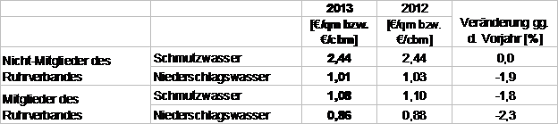 Betrachtet man einen durchschnittlichen Privathaushalt mit 4 Personen (200 cbm Wasserverbrauch; 130 qm befestigte Fläche), so wie er beim Gebührenvergleich des Bundes Deutscher Steuerzahler zu Grunde gelegt wird, dann ergibt sich für diesen Haushalt für 2013 eine Abgabenlast von 619,30 .