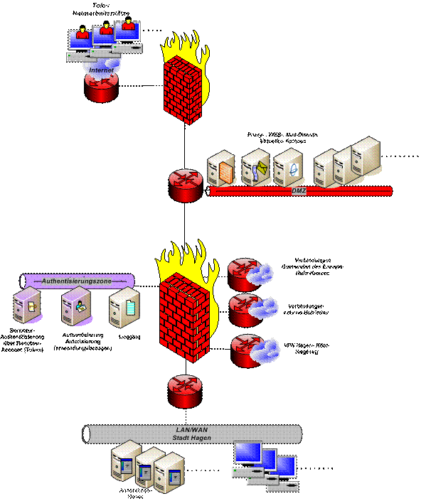 · Festlegung von Rollen und Rechten bei diversen Verfahrenszugriffen, Konfigurierung der städtischen Firewall-Authentisierungszone