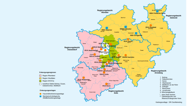 - Im Entsorgungsgebiet NRW anfallende Gewerbeabfälle zur Beseitigung sollten im Regionenprinzip einbezogen werden, zur Darstellung der wirtschaftlichen Auslastungen der Müllverbrennungsanlagen.