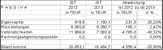 Die Bilanz zum 31.12.2013 schließt mit einer Bilanzsumme von 16.495,7 TEUR ab.