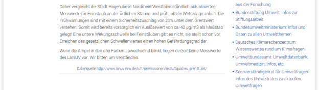 -Information über „Hohe Feinstaubbelastung“ auf der Hagener Internetseite