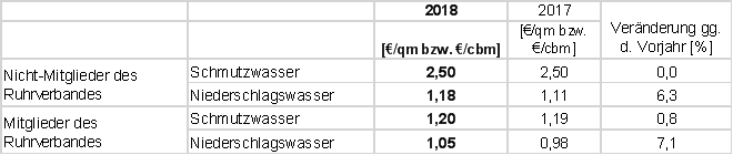 Nach der Neufassung des Landeswassergesetzes NRW im vergangenen Jahr gehören Maßnahmen, der Niederschlagswasserableitung und Niederschlagswasserbewirtschaftung, die dem Schutz vor Überflutung und Verschlammung von Gemeingütern, öffentlichen Abwasseranlagen und Grundstücken dienen, zu den ansatzfähigen Kosten in der Kalkulation der Benutzungsgebühren. Für derartige Maßnahmen sind im Jahr 2018 erstmalig Kosten in Höhe von 150 T€ angesetzt.