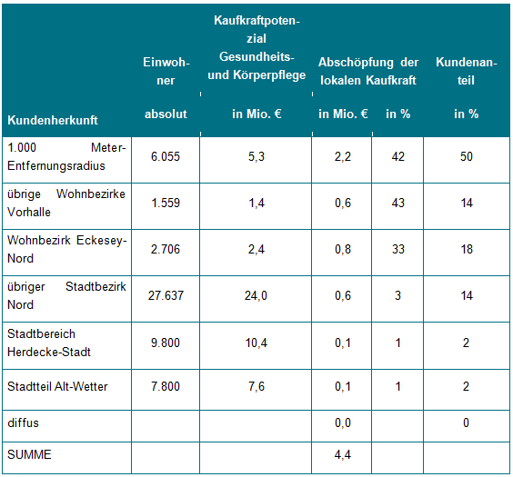 Die Bedenken hinsichtlich der seitens der Gutachter für den Bereich „Gesundheits- und Körperpflege” zu Grunde gelegten Kaufkraft von 914 € werden zurückgewiesen. Das durch den Gutachter geprüfte Sortiment „Gesundheits- und Körperpflege” umfasst neben den Drogerie- und Parfümeriewaren auch die Apothekenwaren. Hierin auch enthalten sind die verschreibungspflichtigen Arzneimittel. Somit deckt das Sortiment das gesamte Angebotsspektrum in diesem Bereich des nahversorgungsrelevanten Sortiments ab. Hierbei decken sich die Angaben des Gutachters auch mit den Veröffentlichungen des Statistischen Bundesamts, das ebenfalls die gesamten Apothekenumsätze berücksichtigt und keine Feindifferenzierung vornimmt.