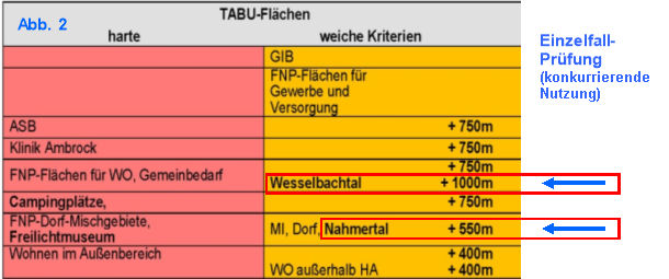 Die sogenannten weichen Kriterien oder Tabuzonen unterliegen der kommunalen Planungshoheit/Entscheidungsfreiheit. Diese Abstände müssen sachlich und rechtssicher begründet werden und dürfen nicht zu einer Verhinderungsplanung führen.