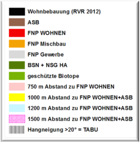 -          1.500 m Abstand zu allen FNP-Wohnbauflächen und Allgemeinen Siedlungsbereichen (eine sachliche Begründung wurde nicht geäußert)
