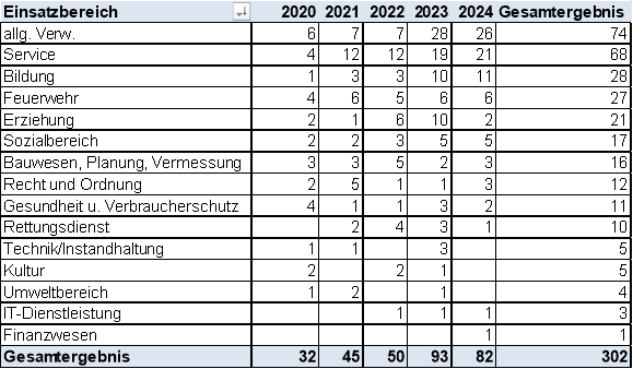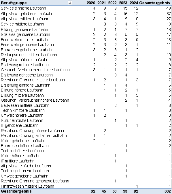 Verwaltungsfachangestellte/-r | 8 | 10 | 8 | 8 | 8 |