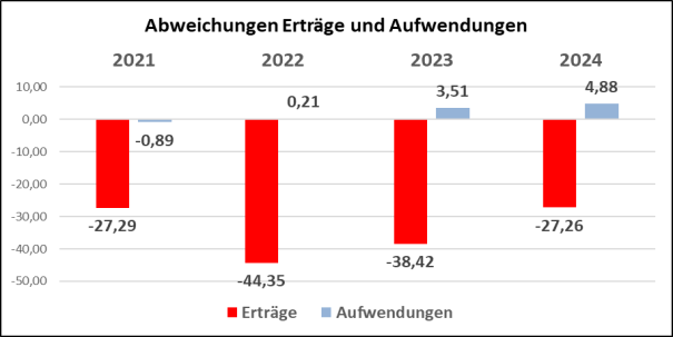 Die vergangenen Jahresrechnungsergebnisse zeigen, dass die geplanten Aufwendungen regelmäßig durch unterjährige zusätzliche Finanzierungsbedarfe überschritten wurden. Die Deckung dieser Finanzierungsbedarfe war nur möglich, da auch die Steuereinnahmen sich stärker als geplant entwickelt hatten.