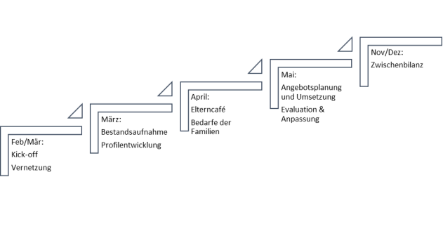 - Auswertung der Bedarfe und Ableitung einer passenden Angebotsstruktur für Familien und ihre Kinder