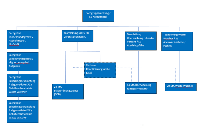 Durch die Installation einer Zentralen Koordinierungsstelle (ZKS) beim Stadtordnungsdienst wird die Einsatzeffektivität und -effizient deutlich gesteigert, ein aus unserer Sicht fälliger Service für unsere Bürgerschaft etabliert und die Kooperation mit anderen Stellen und Behörden auf eine verlässliche Grundlage gestellt.
