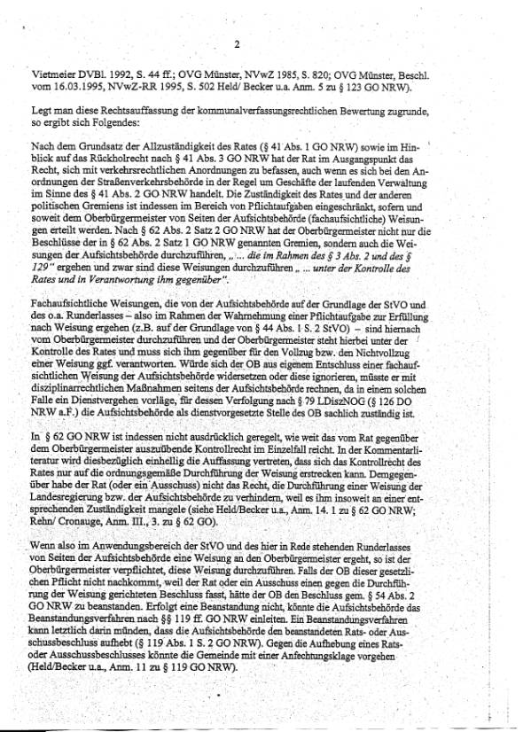 Straßenverkehrsbehörde. Würde diese Entscheidung durch den Beschluss z.B. einer