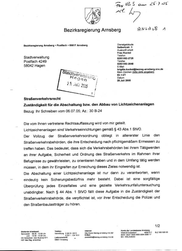 Straßenverkehrsbehörde nur unter Auflagen abgeschaltet werden sollten, von der