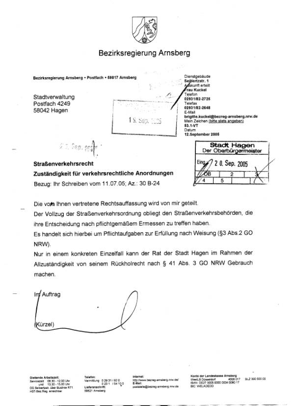 Die Straßenverkehrsbehörde hat deshalb mittlerweile, auf dem gesetzlich