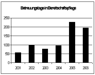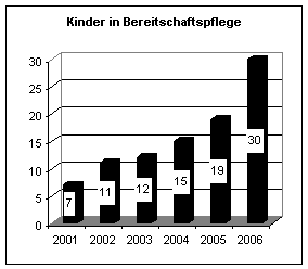 In der Bereitschaftspflege wurden in 2006 insgesamt 30 Kinder mit 1944 Betreuungstagen gezählt.