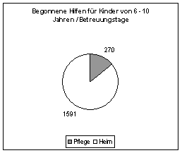 Für die Kinder von 6 – 10 Jahren standen seit Mai 2006 zwei Bereitschaftspflegefamilien zur Verfügung. In dieser Altergruppe wurden insgesamt 19 Kinder außerhalb des Elternhausens untergebracht. Drei Kinder davon fanden an 270 Betreuungstagen  Aufnahme in einer Pflegestelle, 16 Kinder wurden an 1591 Betreuungstagen im Heim aufgenommen. Dies entspricht einem Anteil von 15 % in Pflegefamilien. Auch wenn die Aufnahme eines Kindes von 6 – 10 Jahren in eine Pflegefamilie nicht in jedem Fall pädagogisch geeignet ist, so ist hier noch Ausbaubedarf.