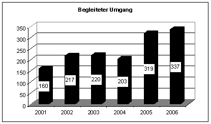 Der erhöhte Personalbedarf für die intensive Beratung und Begleitung der Bereitschaftspflegefamilien begründet die kurzen Verweilzeiten in den Bereitschaftspflegestellen, den hohen Beratungs- und Abstimmungsbedarf der Pflegeeltern und Fachkräfte, die notwendigen diagnostischen Abklärungen und der Gestaltung der Umgangskontakte mit der Ursprungsfamilie. Der Umgang mit der Ursprungsfamilie gewinnt  aber auch in der allgemeinen Betreuung von Pflegeverhältnissen zunehmend an Bedeutung, da sowohl aus fachlicher als auch aus rechtlicher Sicht für das Kind der Erhalt familiärer Beziehungen notwendig ist. Da Pflegeeltern und Kind in dieser Situation häufig Unterstützung benötigen, ist der Anteil der begleitenden Umgangskontakte ab 2005 sprunghaft angestiegen.