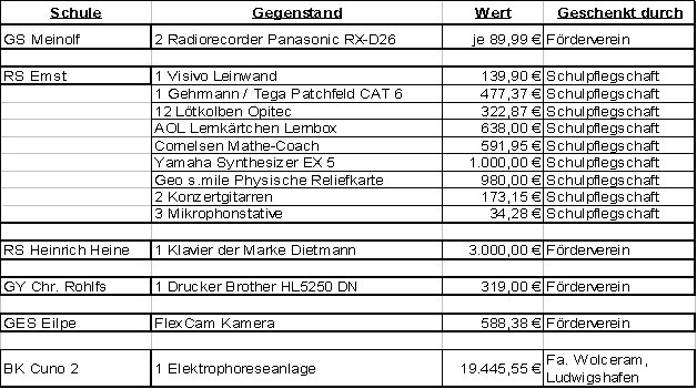 Fördervereine, Schulpflegschaften und anderen Gönnern der Schulen die in der