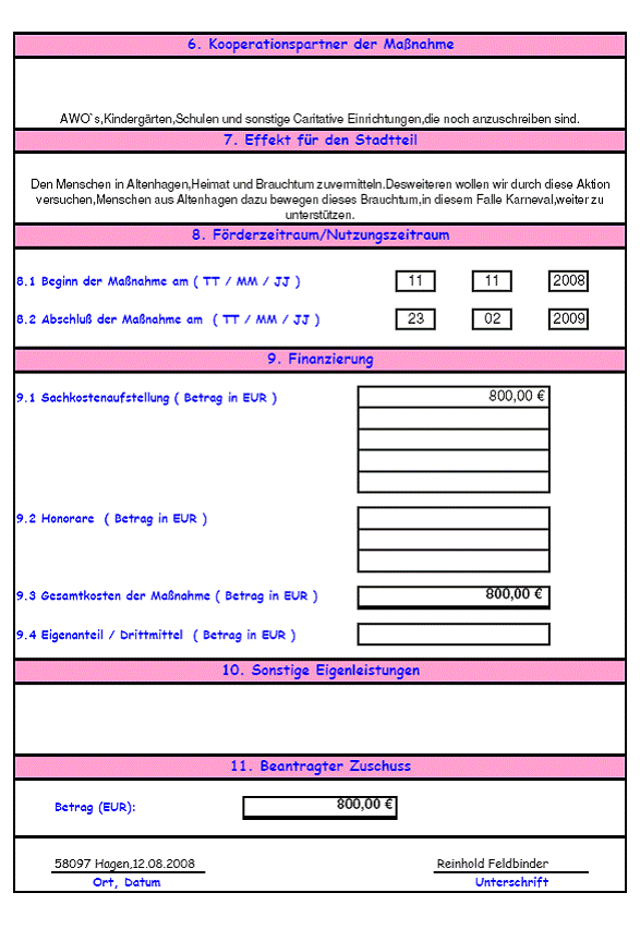 Projekt, für den Stadtteil Altenhagen in Höhe von 800 € zuzustimmen.