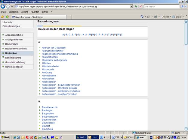 Veröffentlichung eines Baulexikons im Internet-Auftritt der Stadt Hagen